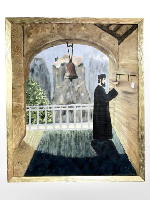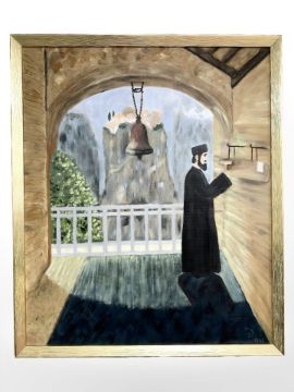 Danish School : Figure standing by a bell, oil on canvas, 49 cm x 59 cm.