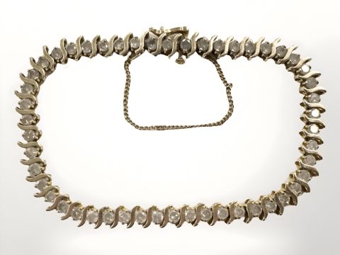 A 10ct yellow gold diamond bracelet, set with fifty diamonds, approximately 5ct.