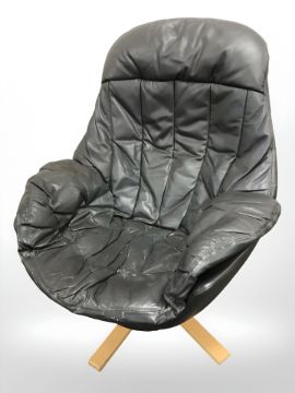 A contemporary Scandinavian grey leather swivel armchair on bentwood support