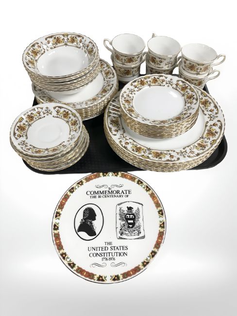 Forty six pieces of Royal Stafford Clovelly tea and dinner porcelain, together with a Royal Tuscan United States constitution commemorative plate.