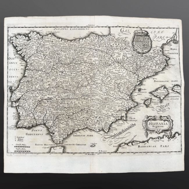 A 17th century map of Spain, circa 1640, 37 cm x 32 cm.