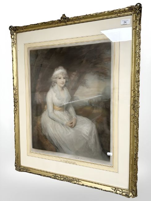 After Sir Henry Raeburn : The Honourable Mrs Wharton, mezzotint, signed by the engraver, 47 cm x 58 cm.