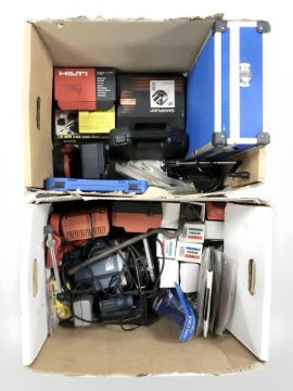 A group of hand and power tools, assorted hardware. (continental plugs, 2 boxes)