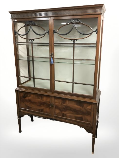 A reproduction mahogany glazed double door display cabinet, 122 cm x 41 cm x 183 cm