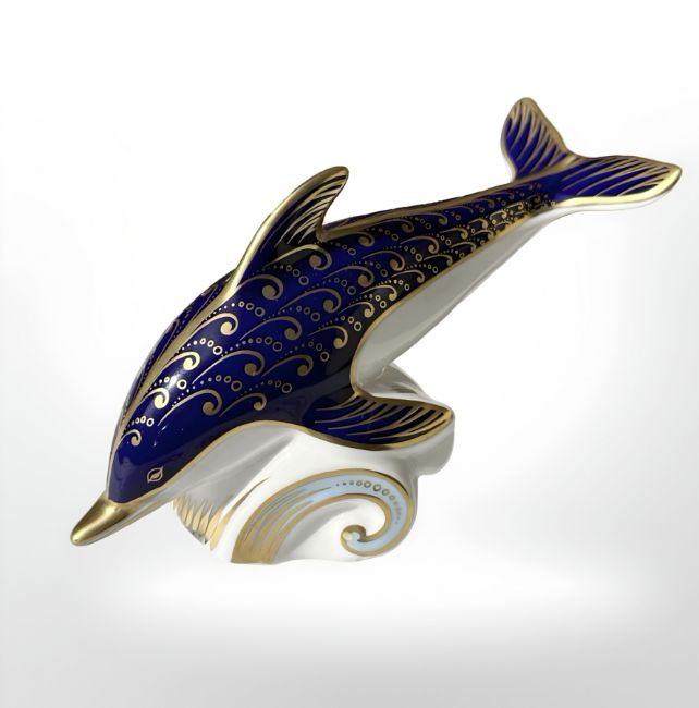 A Royal Crown Derby Dolphin paperweight, with silver stopper.