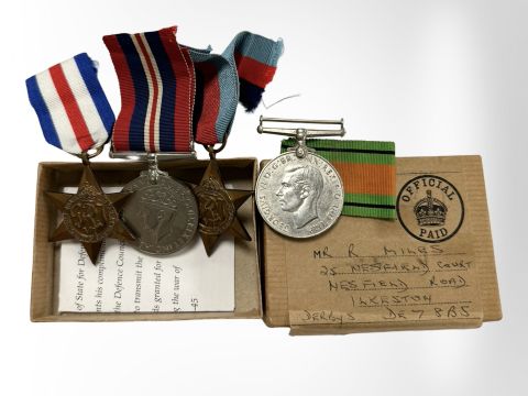 A group of four World War II campaign medals, in original issue box.