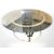 A contemporary glass and painted metal circular coffee table, diameter 106 cm, and a further similar coffee table on brass deers hoof feet.