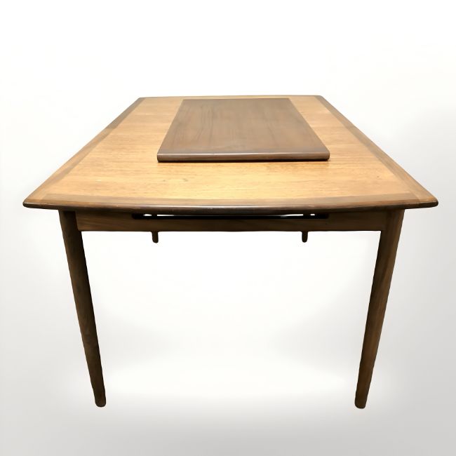 A 20th century teak extending dining table, with leaf, together with set of four dining chairs, table 145 cm x 89 cm x 72 cm. (unextended)