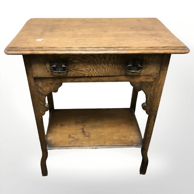 An Arts and Crafts single drawer side table, 61 cm x 37 cm x 74 cm.