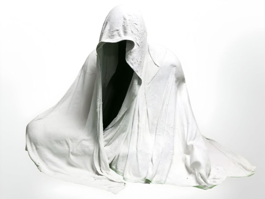 A contemporary cloth and plaster sculpture in the form of a shrouded figure, height 72 cm.