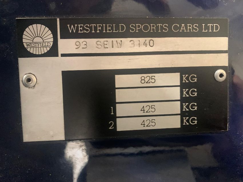 1994 Westfield SEi Wide, Vauxhall 2 litre DOHC 16 valve engine, registration Q604 VAB, 8,127 miles, navy blue, with removable black vinyl hood, MOT expired 31 March 2021 and declared SORN, with V5 document showing 1 former keeper, immobiliser, two keys.