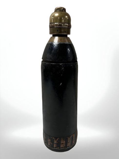 A Boer War British 15lb shrapnel shell with brass fuse
