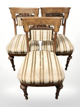 A set of three continental burr walnut salon chairs.