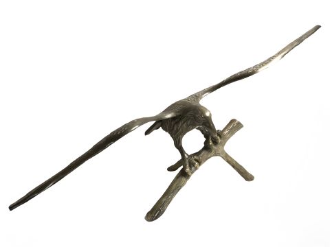 A brass figure of an eagle perched on branch, width 46 cm.