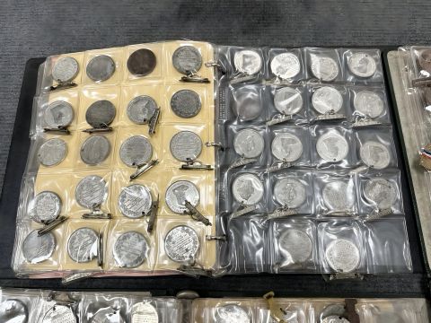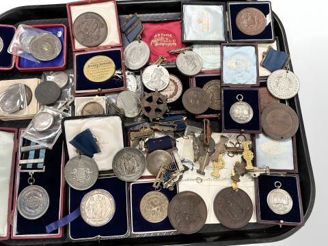 An interesting and extensive collection of several hundred Victorian and later school regular attendance medals, issued by various boards of education and councils, many examples in silver. * Viewing recommended. (Four albums plus a tray of boxed and unboxed medals)
