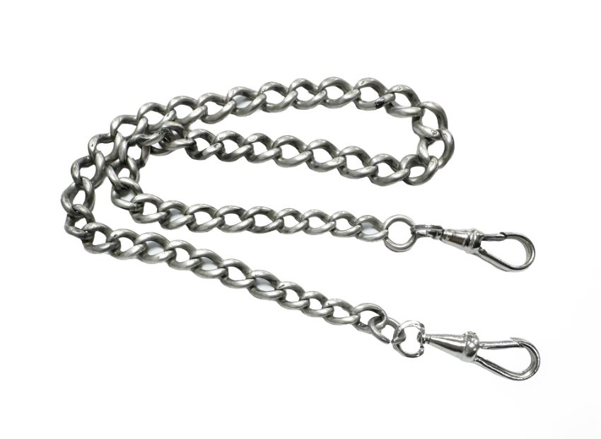 A silver watch chain.