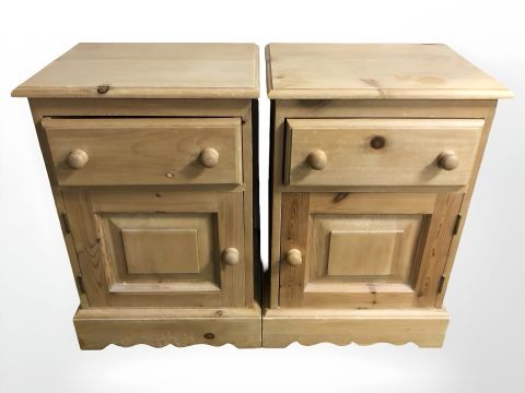A pair of pine bedside cupboards, width 45 cm x 35 cm x 67 cm