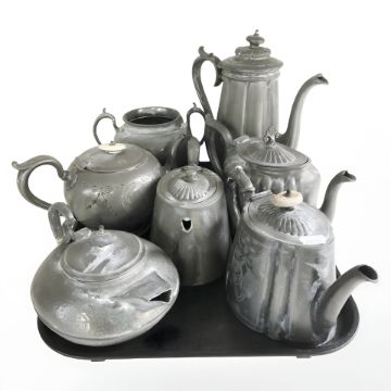 A group of 19th century pewter tea and coffee pots.