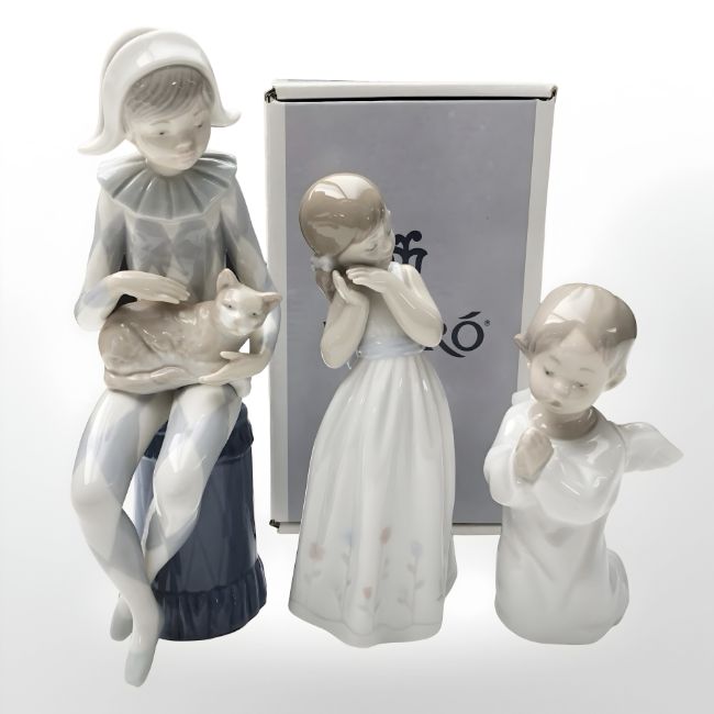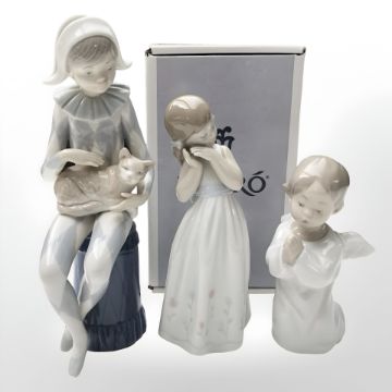 A Lladro figure 'My Sweet Princess', No. 6973, with original box, together with a further Lladro angel, No. 4538, and a Nao figure of a boy with a cat.