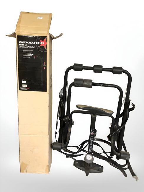 A bike rack, pump and a bike telescopic maintenance stand in box