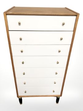 A G Plan teak seven drawer tallboy, designed by E. Gomme, 60 cm x 41 cm x 128 cm.