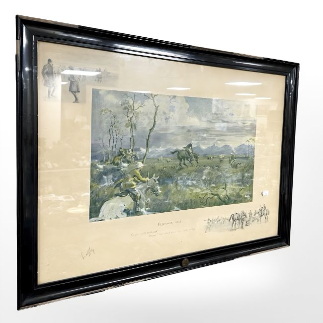 After Charles Johnson 'Snaffles' Payne (1884-1967) Peshawar Vale, colour print, signed in pencil to margin with blind stamp and artists remarque, 29 cm x 49 cm.