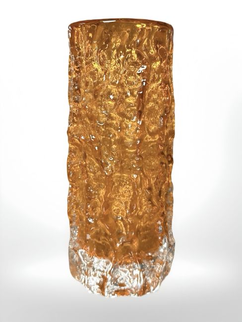 A Whitefriars bark textured tangerine glass vase designed by Geoffrey Baxter, height 19.5 cm.