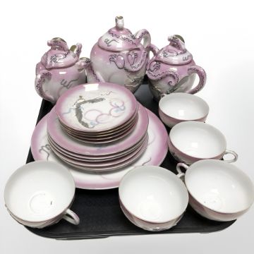 Twenty pieces of Japanese export porcelain tea china on pink ground.