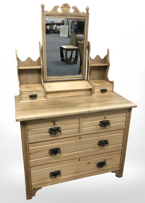 An Edwardian satin walnut four drawer dressing chest, 95 cm x 47 cm x 150 cm