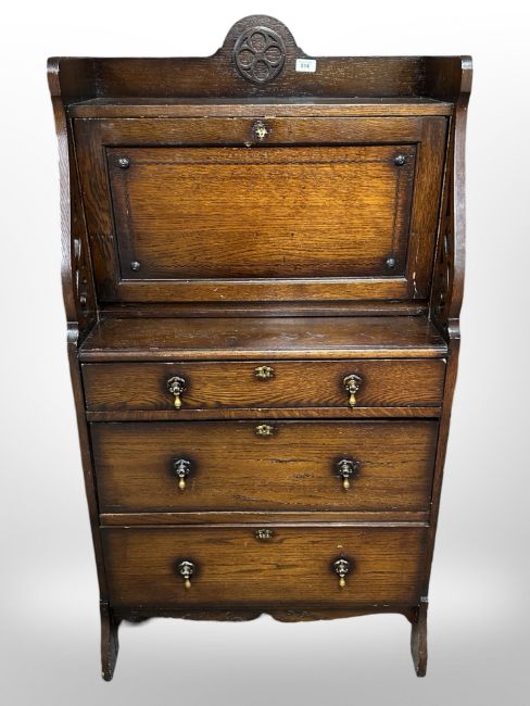 An early 20th century lady's oak writing bureau, 68 cm x 40 cm x 130 cm.
