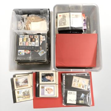 A large quantity of 20th century stamps and First Day Covers, loose and in albums. (2 boxes)