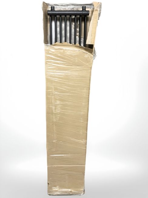 An 1800mm x 320mm metallic finish radiator, in packaging.