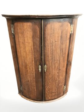 A George III oak bow front corner cabinet, height 113 cm.