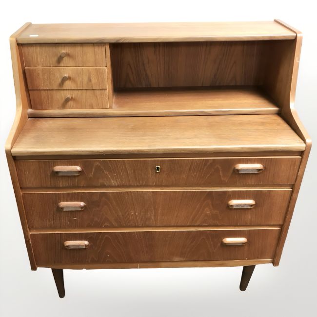 A Danish teak and ply bureau, 84 cm x 41 cm x 95 cm.