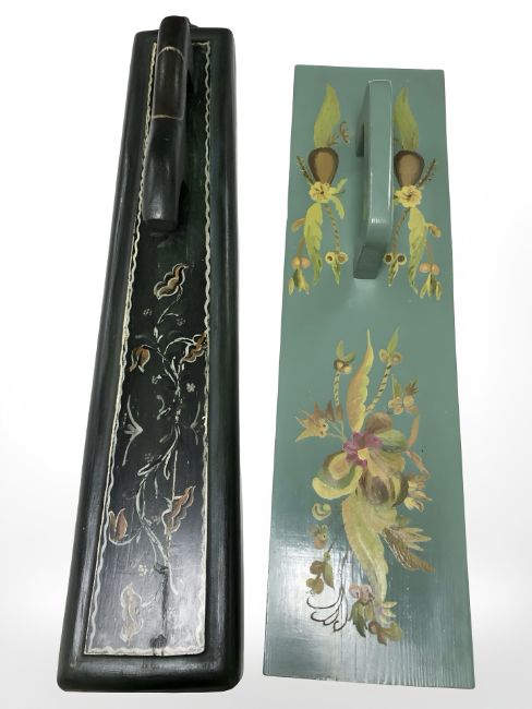 Two Scandinavian painted pine mangle boards.