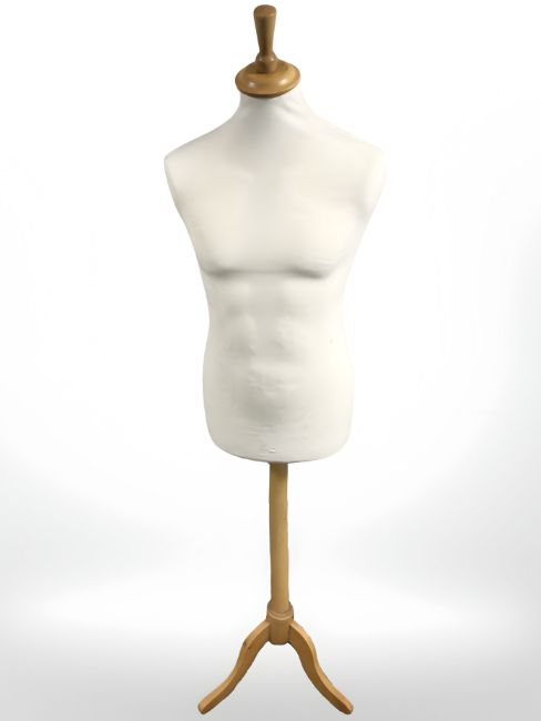 A mannequin torso on tripod stand.