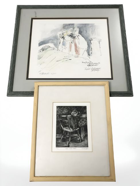 After N. J. Alexander, an English Shakespeare Company print from Henry IV, signed in pencil and numbered 141 of 250, and a further limited edition print after Jo Westgate, entitled 'Chair and table', numbered 7 of 12.