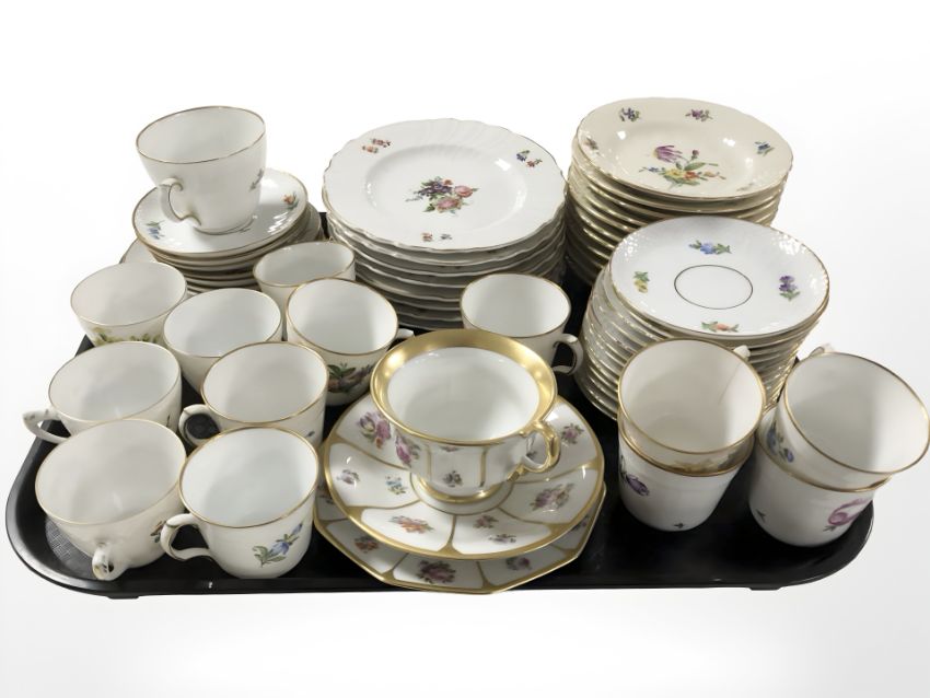 Assorted Royal Copenhagen and Czechoslovakian tea china.