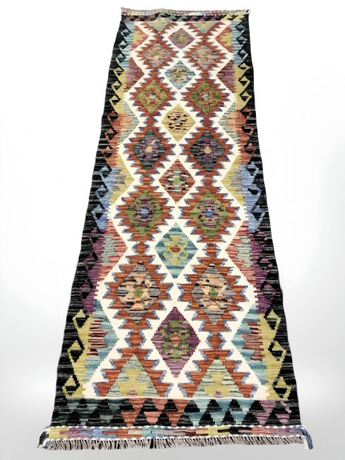 A Chobi Kilim runner, 244 cm x 78 cm.