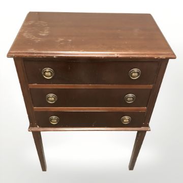 A 20th century stained teak three drawer low chest, width 50 cm.