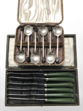 A boxed set of six EPNS coffee spoons and further boxed set of six butter knives