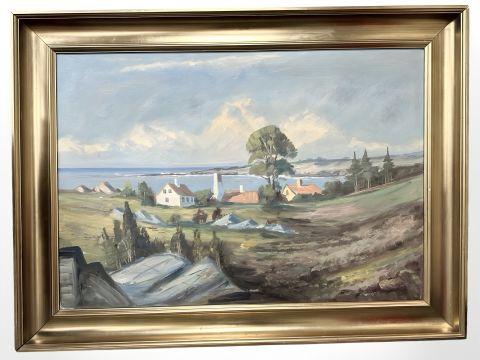 Danish School : Buildings by a headland, oil on canvas, 95 cm x 66 cm.
