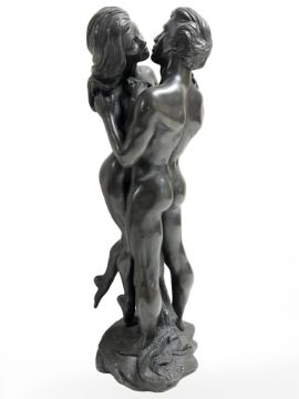A bronzed resin figure of two lovers, height 36 cm.