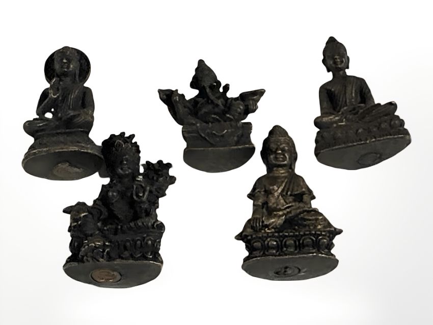 A group of oriental bronze miniature figures of deities, Buddha, etc, each approximately 3.5 cm high.