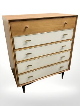 A Wrighton teak five drawer chest, 75 cm x 47 cm x 90 cm