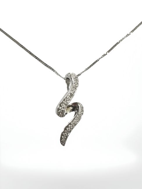 A 9ct white gold diamond set pendant on chain, length 45 cm.