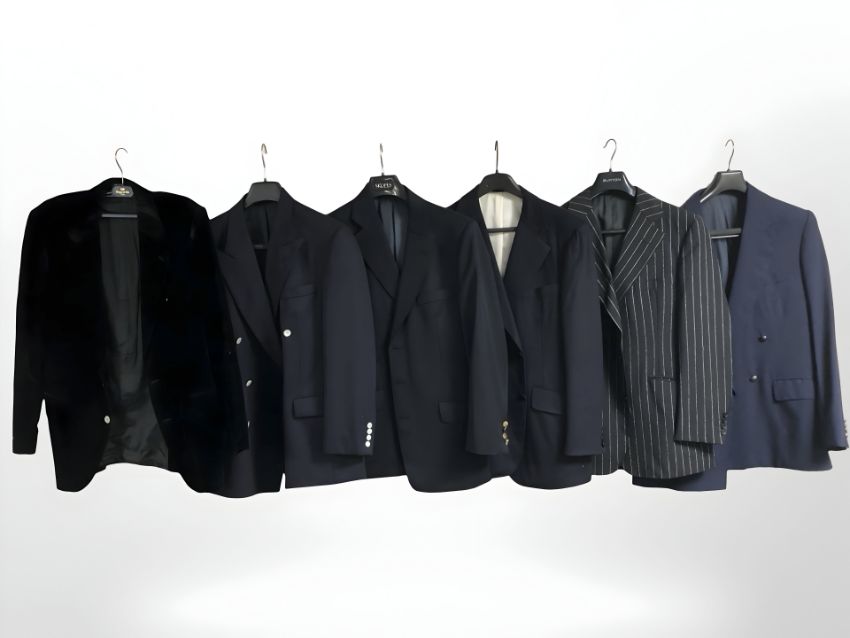 Six gents blazers including Austin Reed, Aquascutum, Turnbull & Adder and other brands, one labelled UK78W.