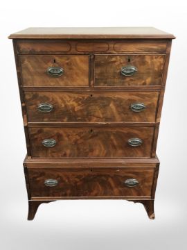 A George III style mahogany five drawer chest, 84 cm x 42 cm x 121 cm.