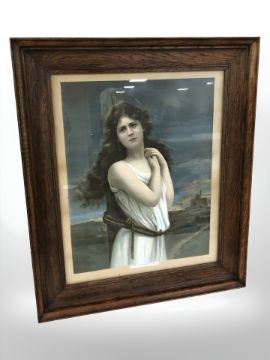 An antique chromolithographic print entitled "for conscience sake", 51 cm x 64 cm together with a further antique print depicting a portrait of a gentleman