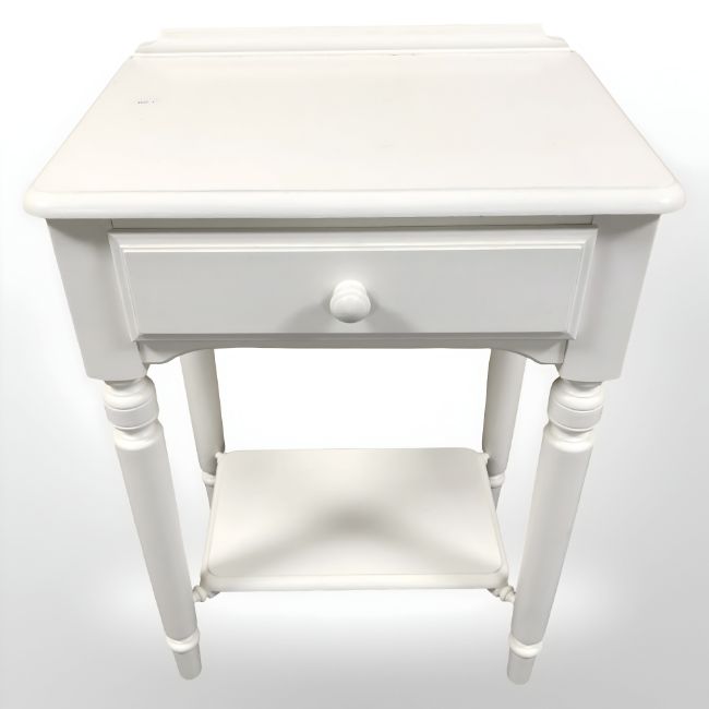 A painted white single drawer side table, width 55 cm, together with a white butlers tray on stand.